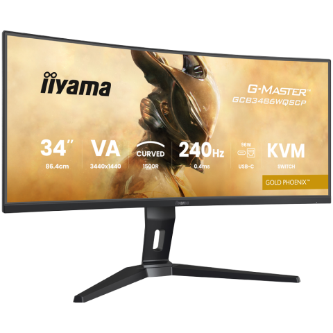 34" UW VA-panel, Curved Gaming 1500R,G-Master Gold Phoenix, 3440x1440-240Hz (21:9),0,4ms (MPRT),500cdm HDR400,FreeSync Premium,Speakers,2xHDMI (2.1) VRR/ALLM,2xDisplayPort, USB-C DOCK (LAN/KVM/95W PD),USB 2x3,2+1xC, PIP/PBP,13cm Height Adj. Stand