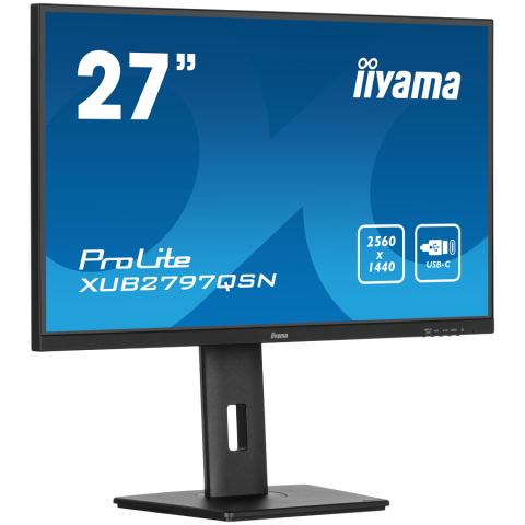 IIYAMA Monitor LED XUB2797QSN-B2 27" IPS 2560 x 1440 @100Hz 300 cd/m² 1300:1 1ms HDMI DP USB-C 65W RJ45 Daisy Chain USB Hub 3.2 height, swivel, tilt, pivot (rotation both sides), 3-side borderless design, matte finish